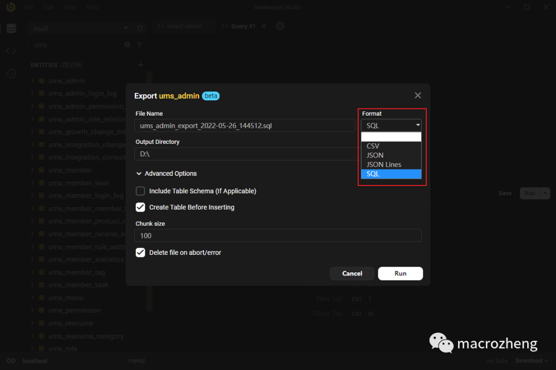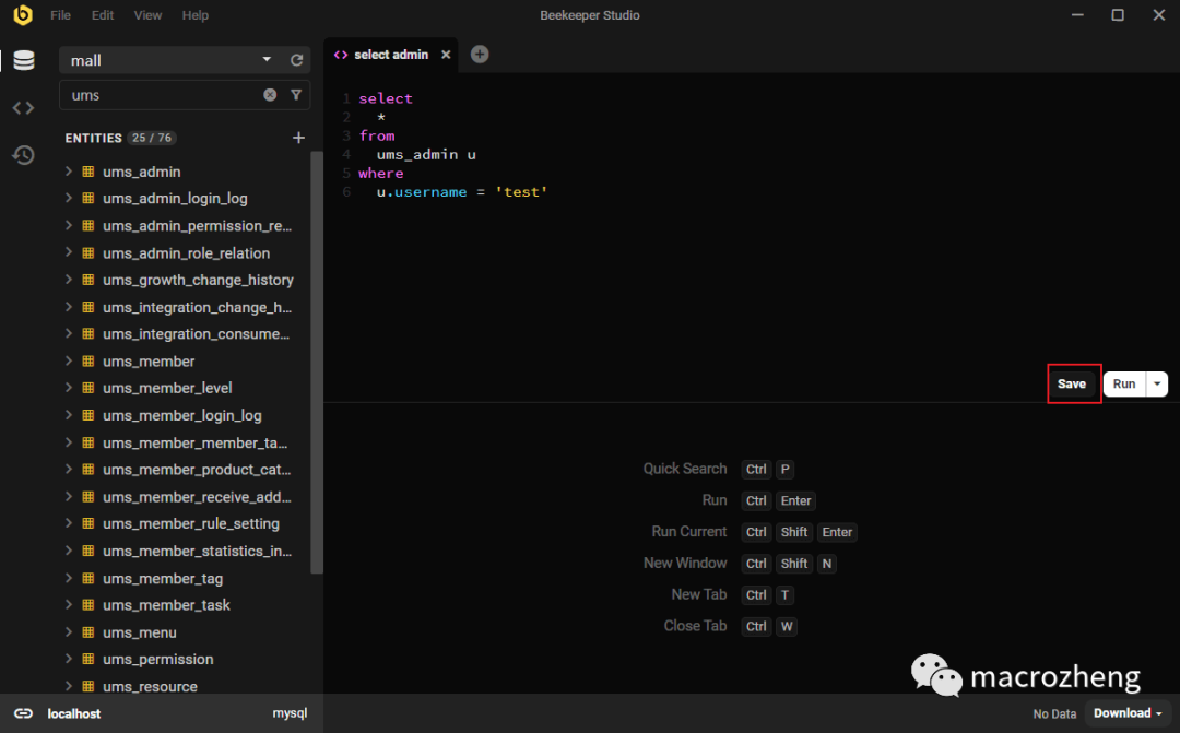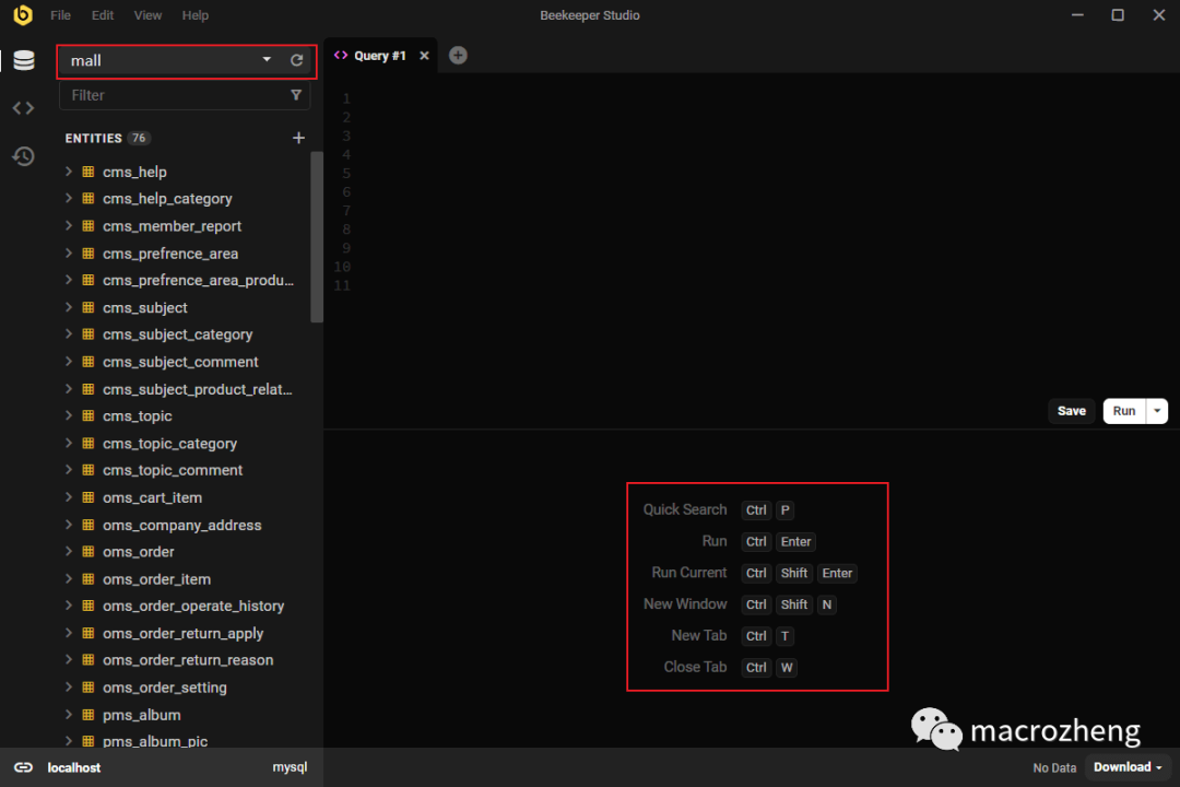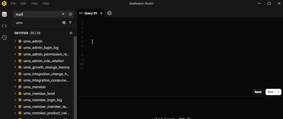- 在使用Beekeeper Studio的编辑器写SQL的时候,支持SQL语法高亮,对数据库表和字段都可以自动提示;