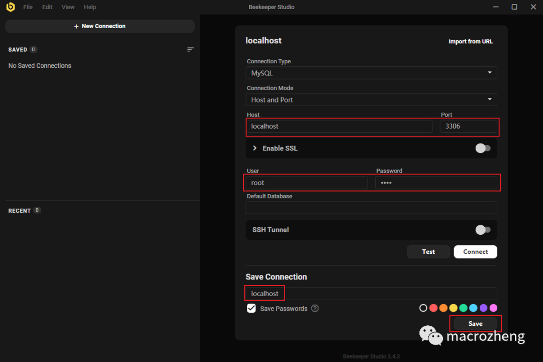 - 这里我们创建一个MySQL连接,输入连接信息,然后点击保存按钮即可;