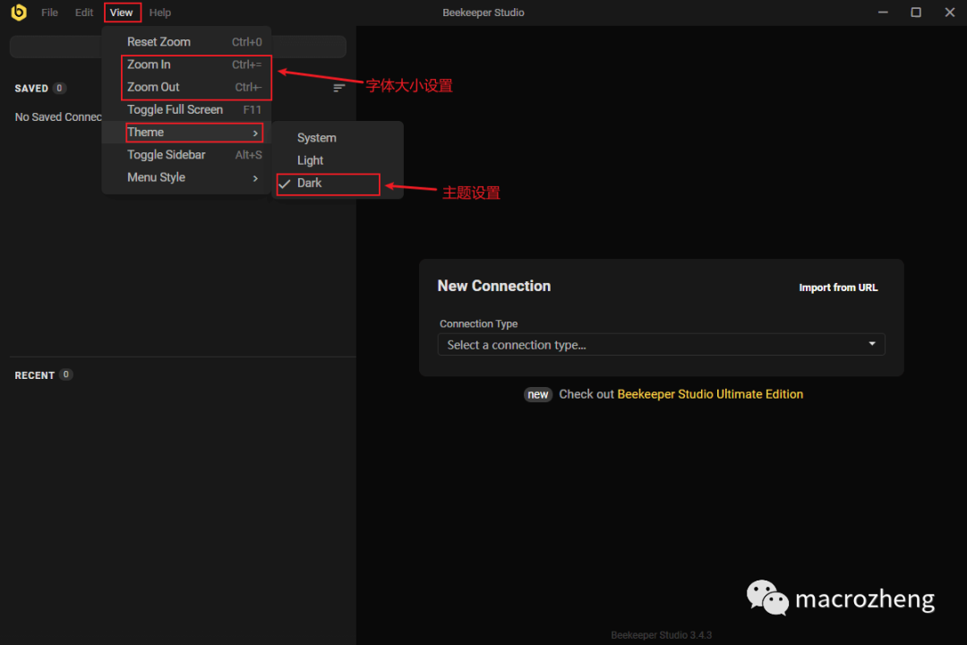 菜单按钮进行字体大小和主题设置,我们把它切换到更炫酷的深色主题。